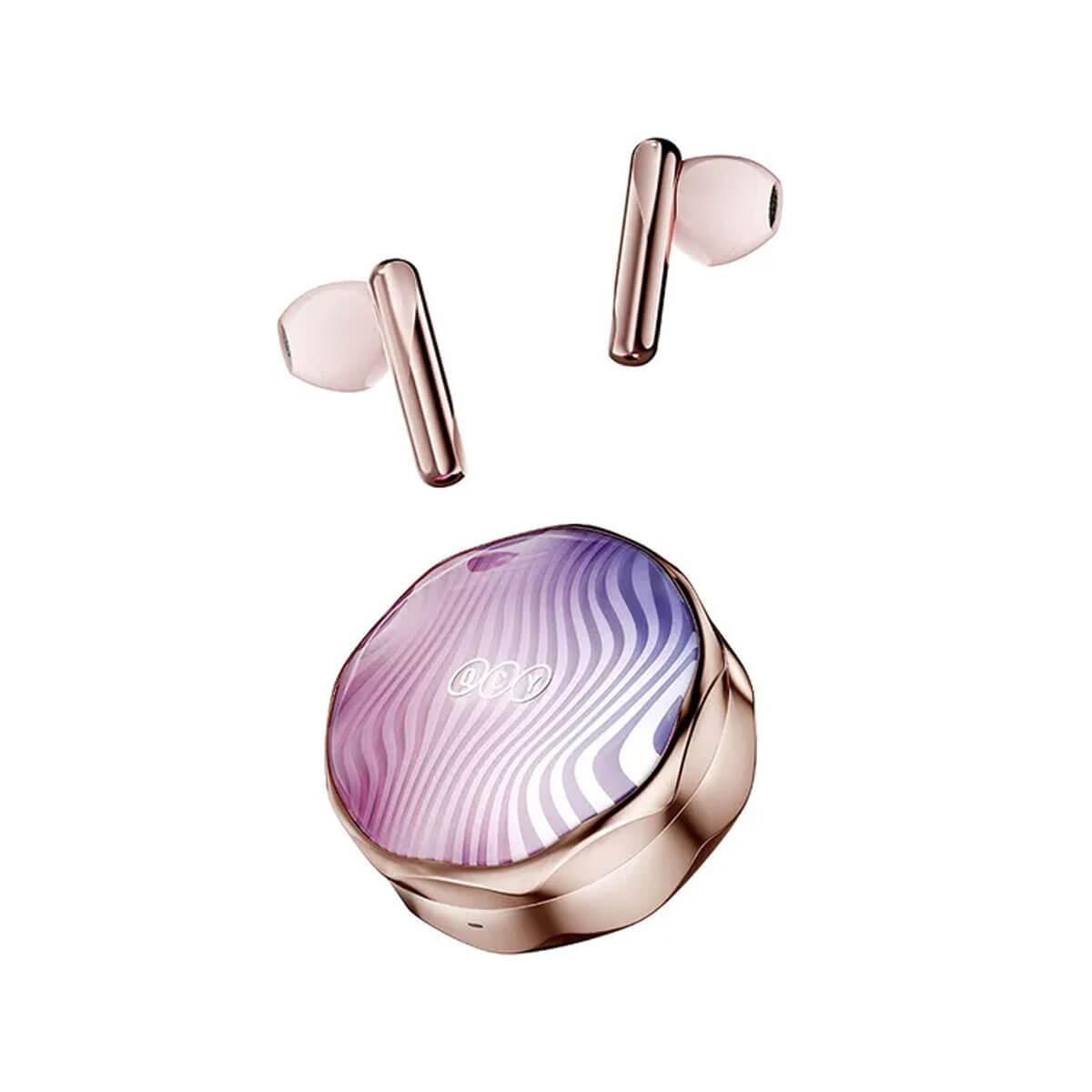 این هندزفری از یک ظاهر شیک و نفیس همراه با بدنه ای جمع و جور، سبک و راحت برخوردار است و عمدتا به عنوان یک هدیه بی نظر به شمار می آید. شما با هر بار شارژ آن می توانید چیزی در حدود 6 ساعت استفاده مناسب داشته باشید و کیس شارژ هم توانایی 3 بار شارژ کامل هدفون ها را داراست. کیس شارژ آن از مفهوم طراحی گل ها استفاده کرده است و می توانید یک قوس زیبایی را مشاهده کنید. سطح کیف از براقیت بسیار بالایی برخوردار است که می تواند بافت فلزی خیلی خوب و لمس صاف و گرم را برای شما به ارمغان آورد.